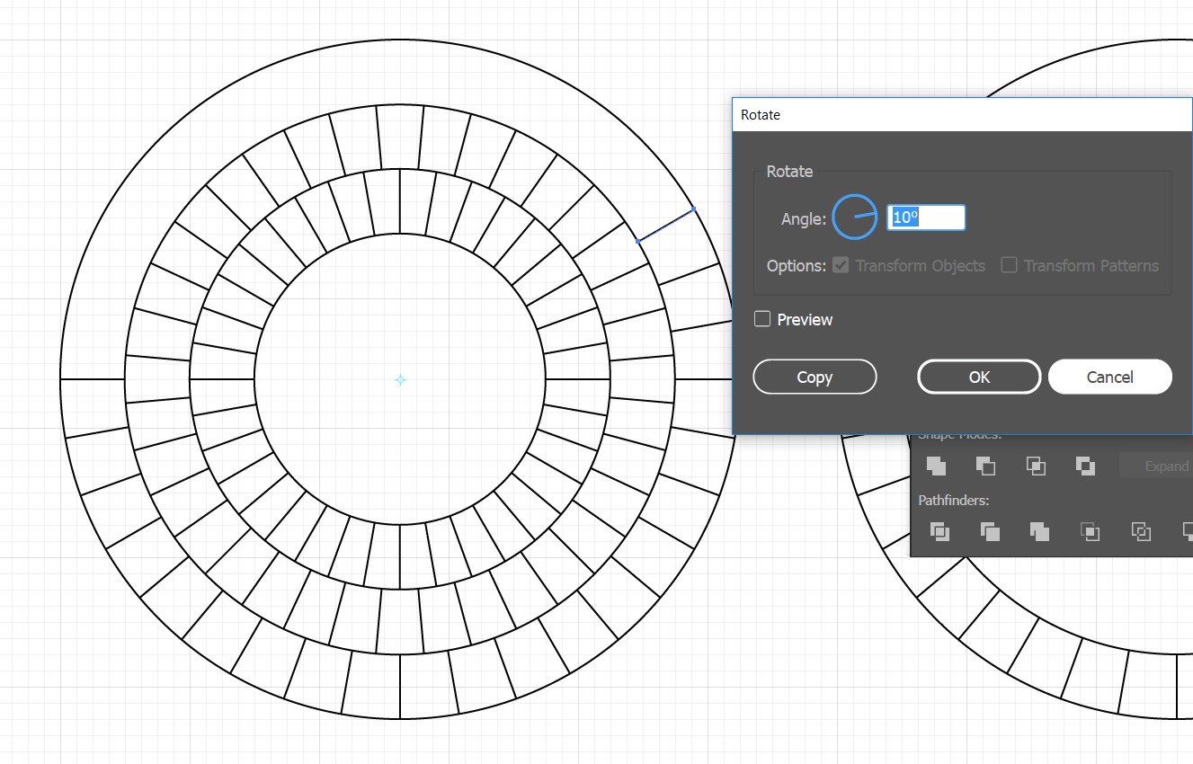 The circle shapes were cut to size using the divide pathfinder tool which allowed them to be separated and elements deleted to leave the final shape behind.